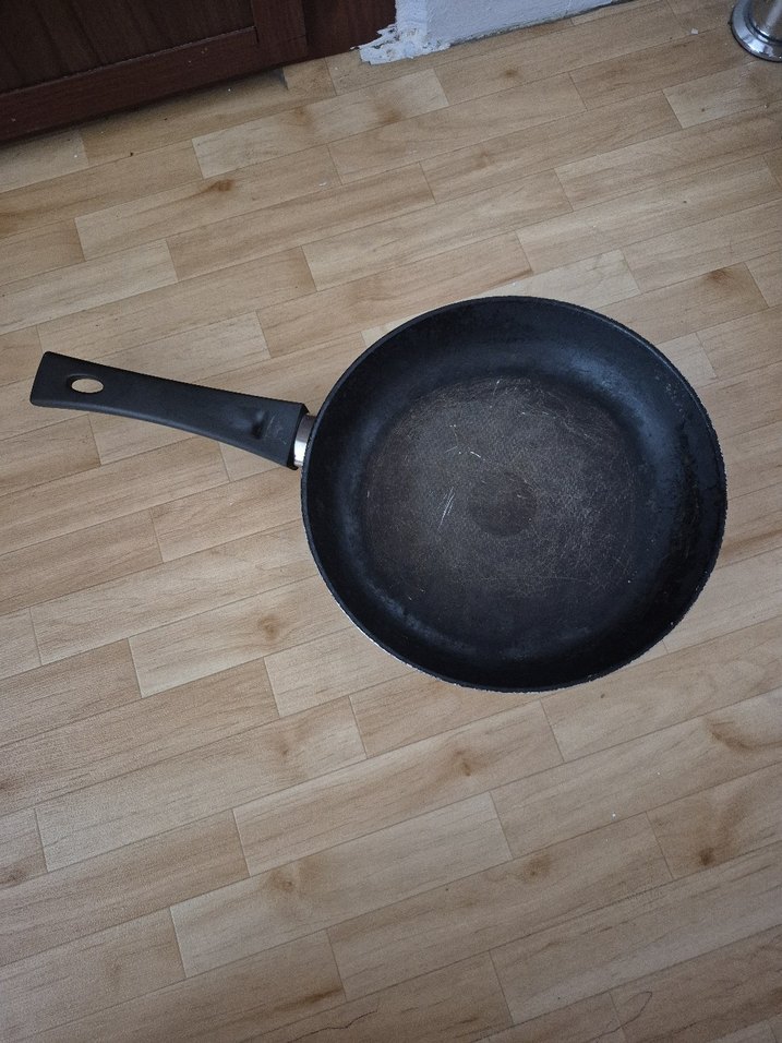 Siyah teflon kaplama, uzun saplı tava, günlük kullanım için uygundur.