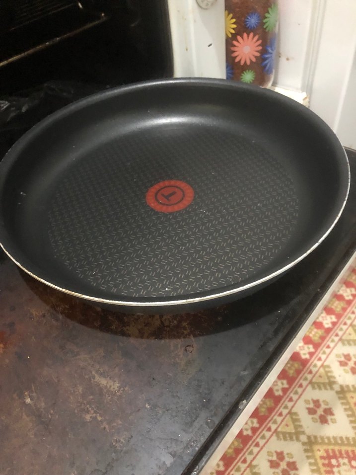 Orta kısmında ısı göstergesi bulunan siyah titanyum teflon kaplama tava ya da fırın kabı Günlük kullanım için uygundur. Kulpu yoktur.