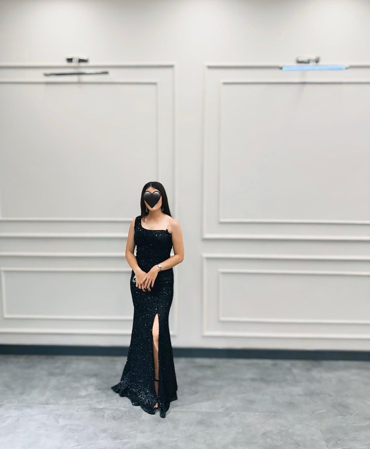 Siyah tek askılı Uzun Abiye Elbise