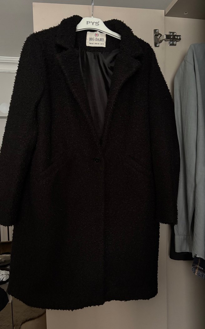 Yumuşak dokulu kumaş ve astarlı, siyah tek düğmeli kaban hiç bir sıkıntısı yoktur
