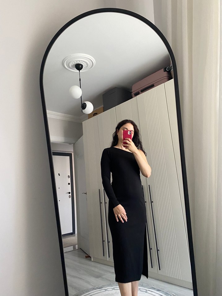 Siyah,tek kol vücuda oturan bu elbise, pürüzsüz sentetik kumaştan üretilmiştir. Minimalist ve normcore tarzıyla ofise uygun, cesur ve zahmetsiz şıklık sunar.