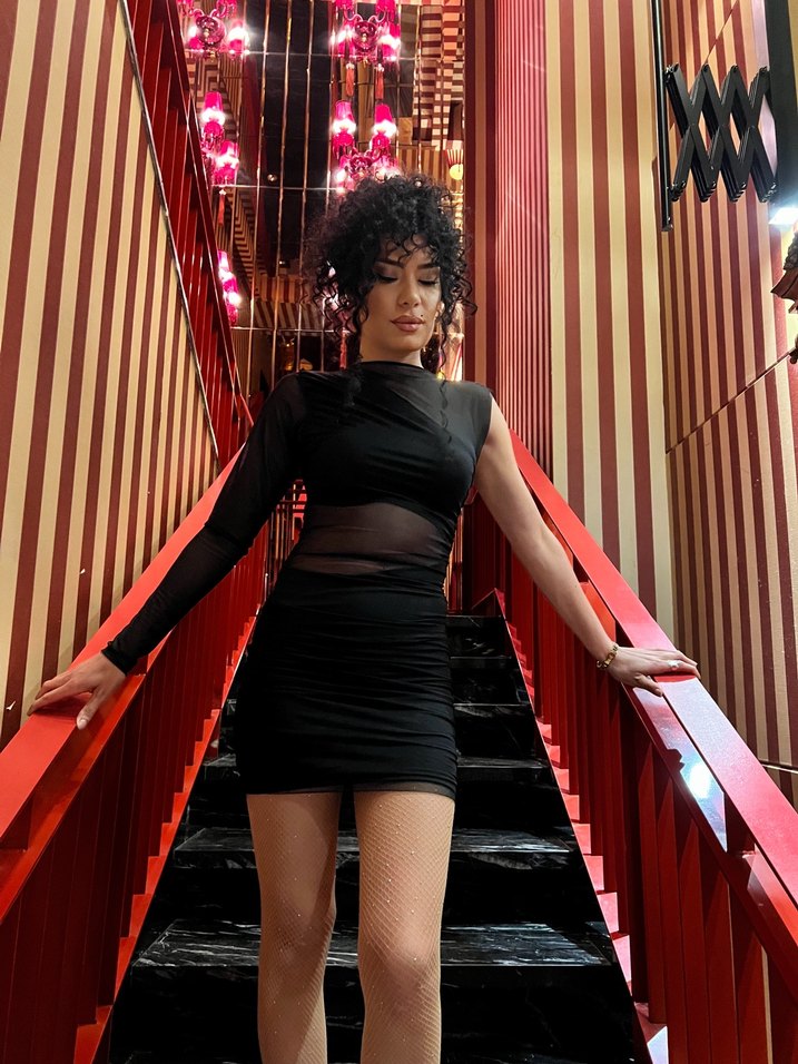 Siyah Tek Kollu Mini Parti Elbisesi
