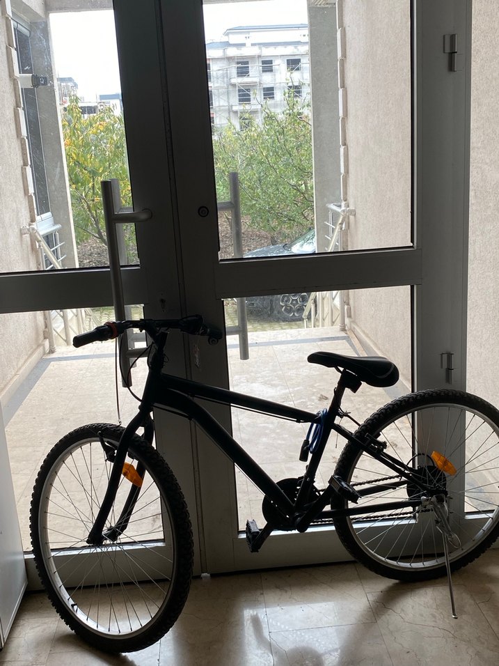 Dayanıklı iskeletli ve rahat oturaklı siyah tekerlekli bisiklet, dengeli sürüş için uygundur. Güvenlik için reflektörler içerir. Pazarlık payı mevcuttur.