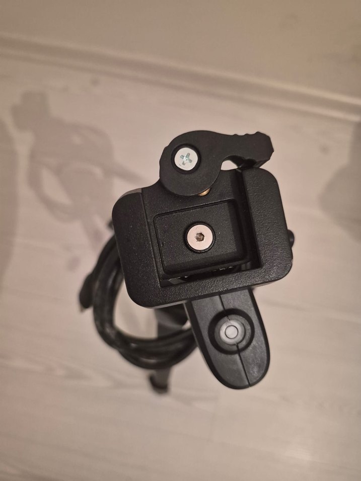 Ayarlanabilir kelepçe ve güvenli kilit mekanizmasına sahip siyah telefon tutucu, cihazı sağlam şekilde tutar.