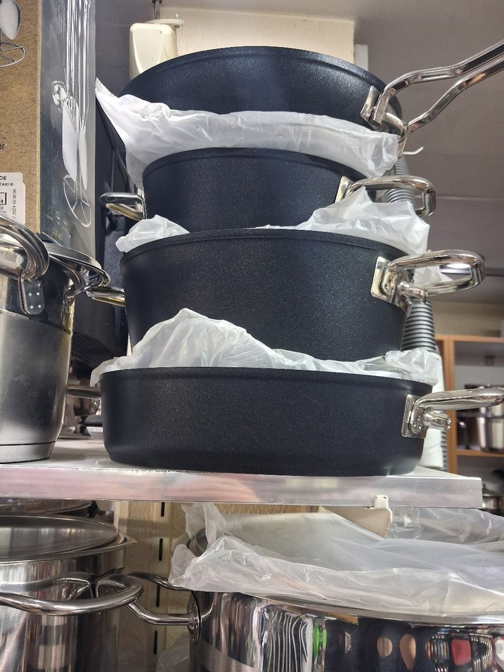 Farklı boylarda siyah tencerelerden oluşan set, sağlam saplarıyla kolay kullanım sağlar. Tencerelerin içinde koruyucu kağıt bulunur.