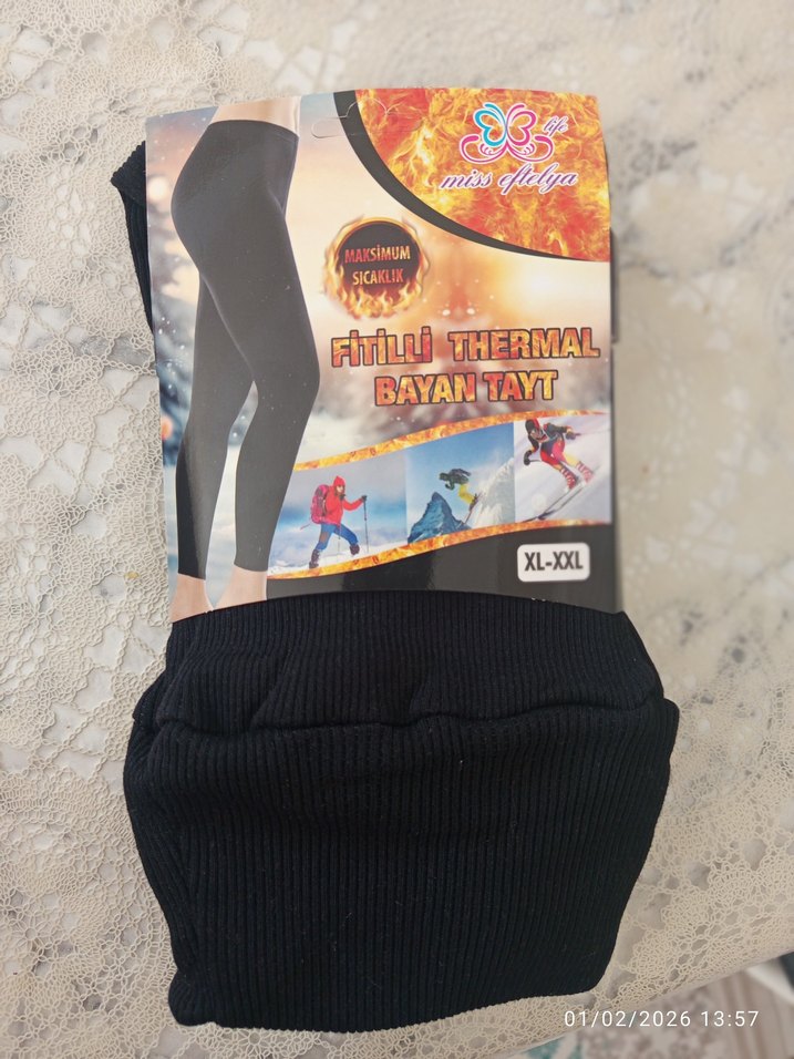 Siyah termal tayt, sıcak tutan yumuşak kumaş ve elastik bel bandıyla rahat kullanım sağlar. Sokak stiline uygun, XL-XXL beden.
