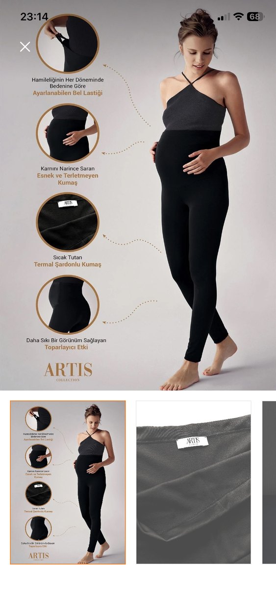 ARTIS'in siyah hamile taytı, yüksek bel ve midi boyda, esnek ve terletmeyen sıcak tutan termal kumaştan üretilmiştir. Karnı narince saran, toparlayıcı etkili rahat bir tasarımdır. Günlük kullanıma uygundur.