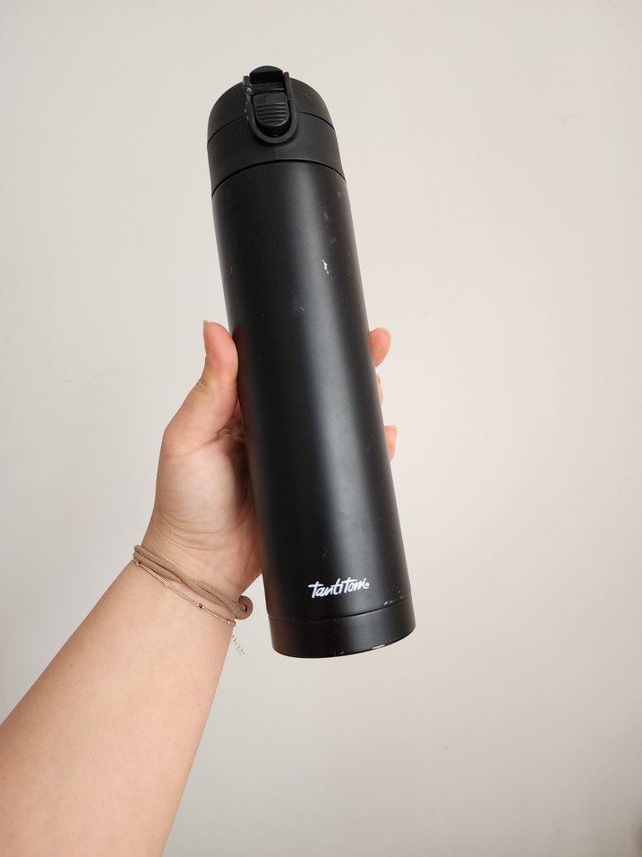Siyah renkte, kolay açılır kapaklı, içecekleri sıcak veya soğuk tutan termos matara. 450 ml kapak kısmını küçük kırıldı ama su sızdırmıyor a101 de 450 tl şuan