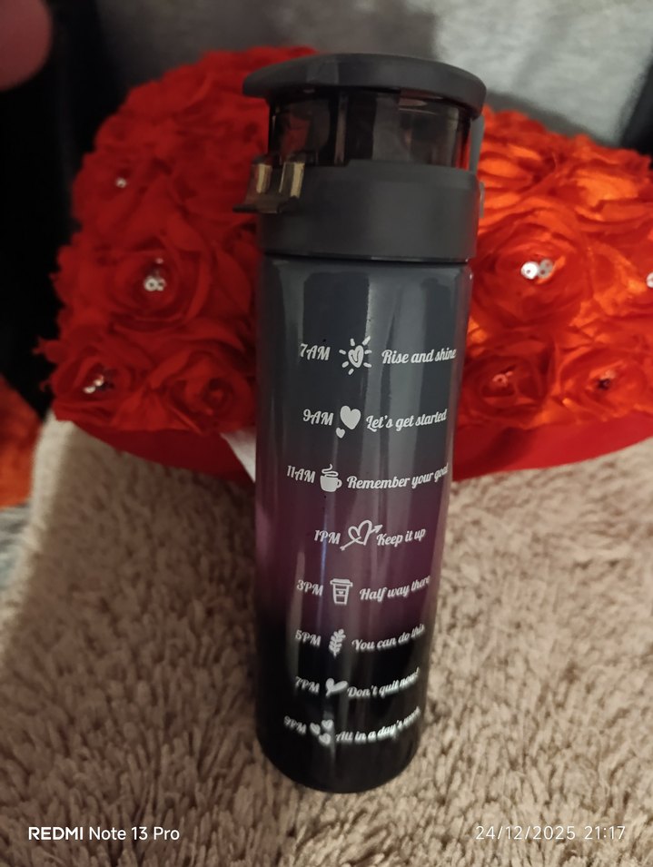 (kodm2) Zaman işaretleriyle donatılmış siyah termos şişesi. Gün boyu içeceklerin sıcak veya soğuk kalmasını sağlar. herhangi bir problemi yok ihtiyaç fazlası diye satılık alıcısına hayırlı olsun NOT sayfamda bay, bayan, çocuk elbise ayak kabı vs ile elektronik eşya züccaciye, tuhafiye vs her türlü ürün bulacağınız geniş ürün yelpazesine sahibiz (2. el ve sıfır) ürünlere göz atınız. #çocuksweatshirt #tişort #bornoz #çocukelbise #elbise #kısakolelbise #gömlek #kadınsweatshirt #elbise #kaban #pantalon #mont #telefon #soğutucu #defter #kulaklık #kutu #yüzük #tespih #omuzçanta.#ayakkabı #Bot