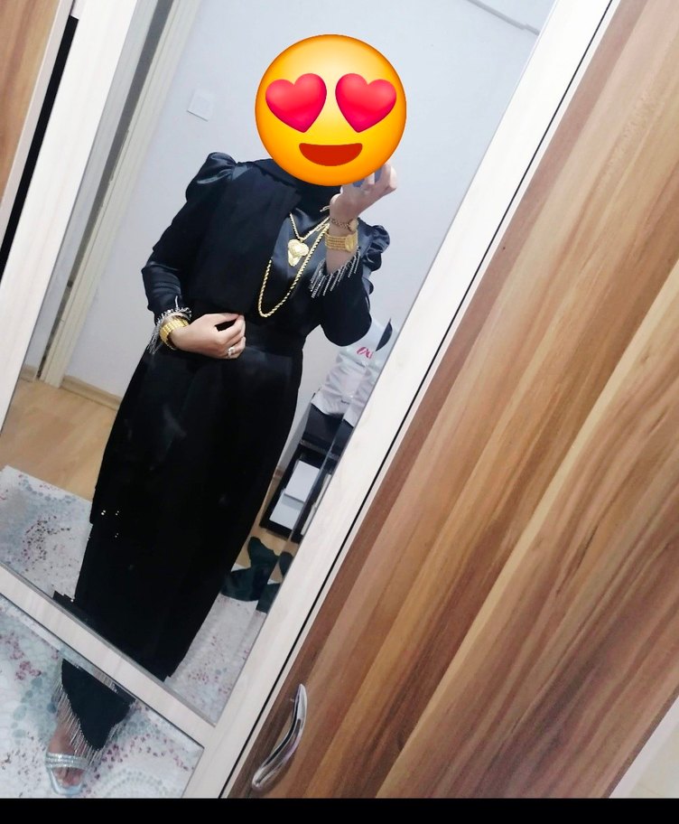 Siyah uzun kollu, yüksek yakalı ve püskül detaylı, ince kesim, ipeksi dokulu gotik elbise.