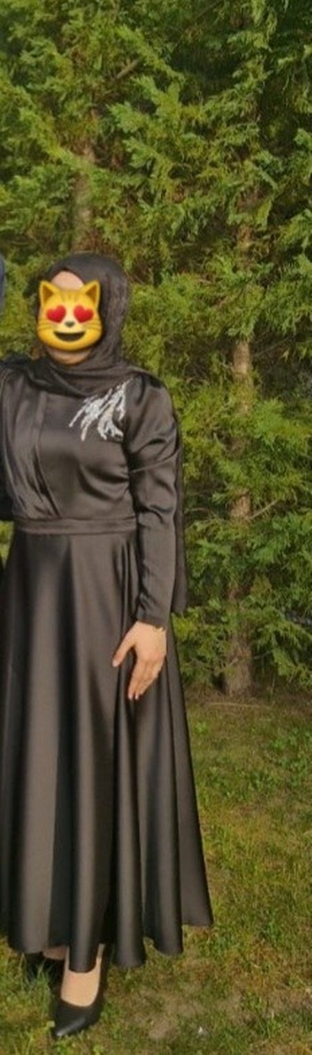 Siyah saten abiye. Astarsız , kemerli. Üzerinde taş detayı olup sadece 1 kez giyildi. 38 beden ama daha dar kalıplı . Boyum 1.53 kilom 60 kilo.