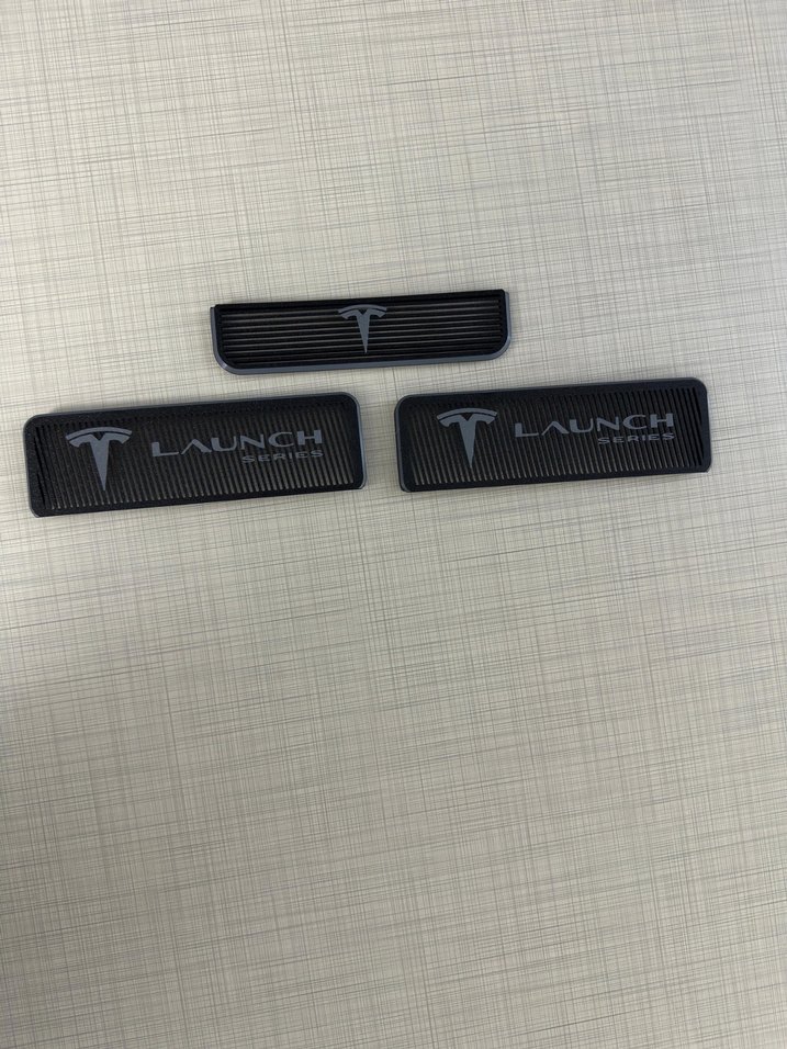 Siyah Tesla Launch logosu içeren amblemler, dayanıklı malzemeden yapılmıştır ve uzun ömürlüdür. ⚡