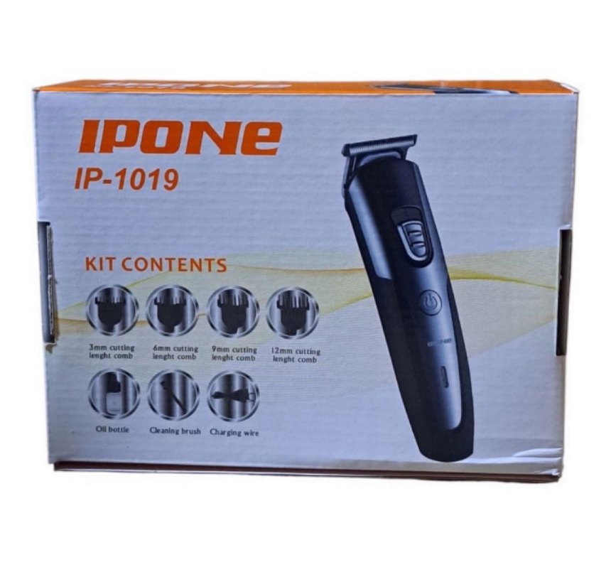 Siyah tıraş makinesi, 3mm, 6mm, 9mm ve 12mm kesim tarakları, temizleme fırçası ve şarj kablosu ile birlikte gelir.
