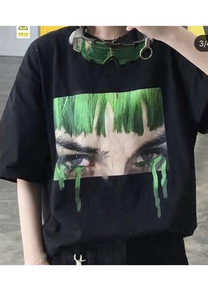 Siyah, önü baskılı tişört. Beden:XS( geniş kalıp) marka:köstebek