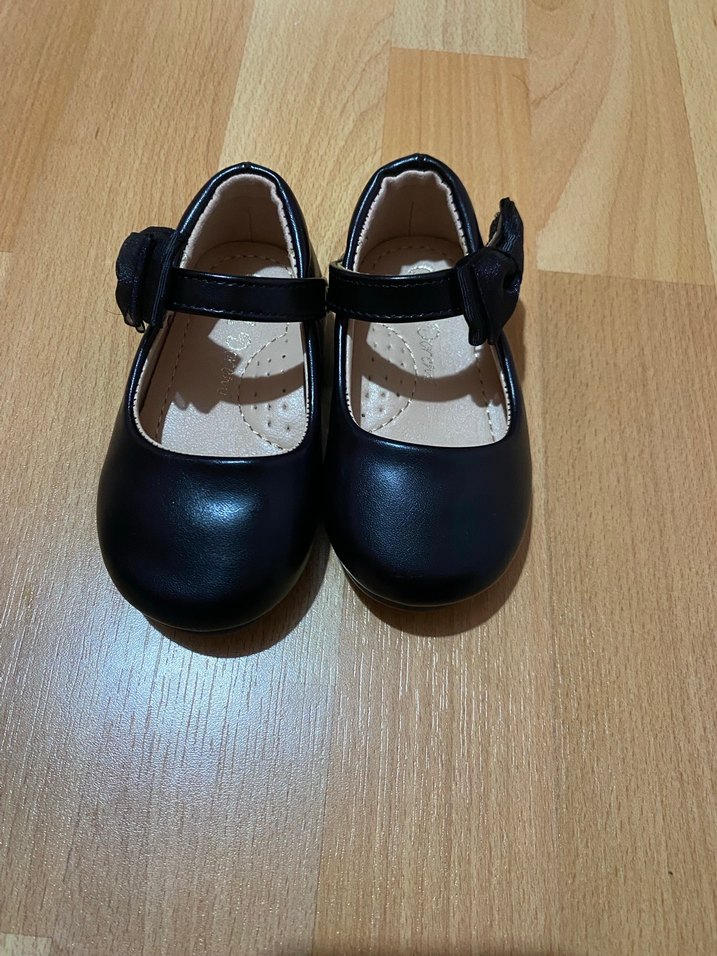 Siyah renkte, tokalı bantlı kız çocuk babet ayakkabılar kauçuk malzemeden üretilmiştir. Düz ve gotik tarzda tasarlanmıştır.