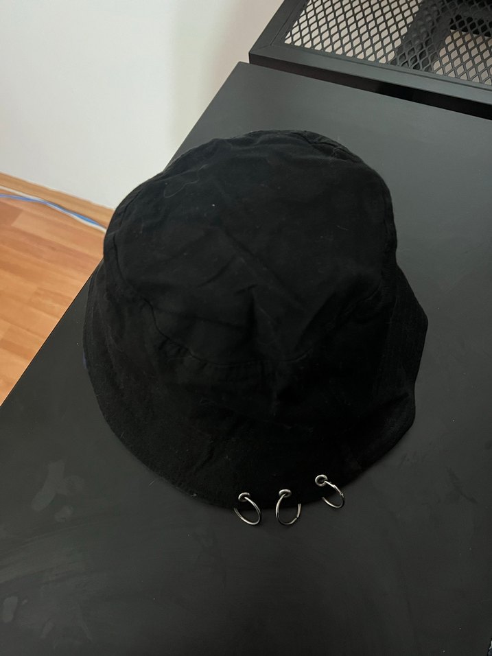 Siyah renkli, tokalı ve metal halka detaylı goth tarzı balıkçı şapkası, sentetik kumaştan üretilmiş, grunge punk tarzına uygun. Ürün yıkanılabilir ve hiçbir hasarı yoktur.