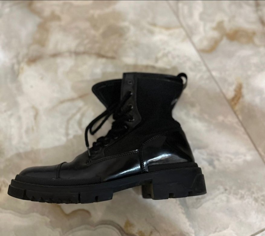 Siyah lastik Erkek botları, blok topuk ve tokalı detaylarla, günlük kullanım için uygun goth tarzında, rock punk havasında.