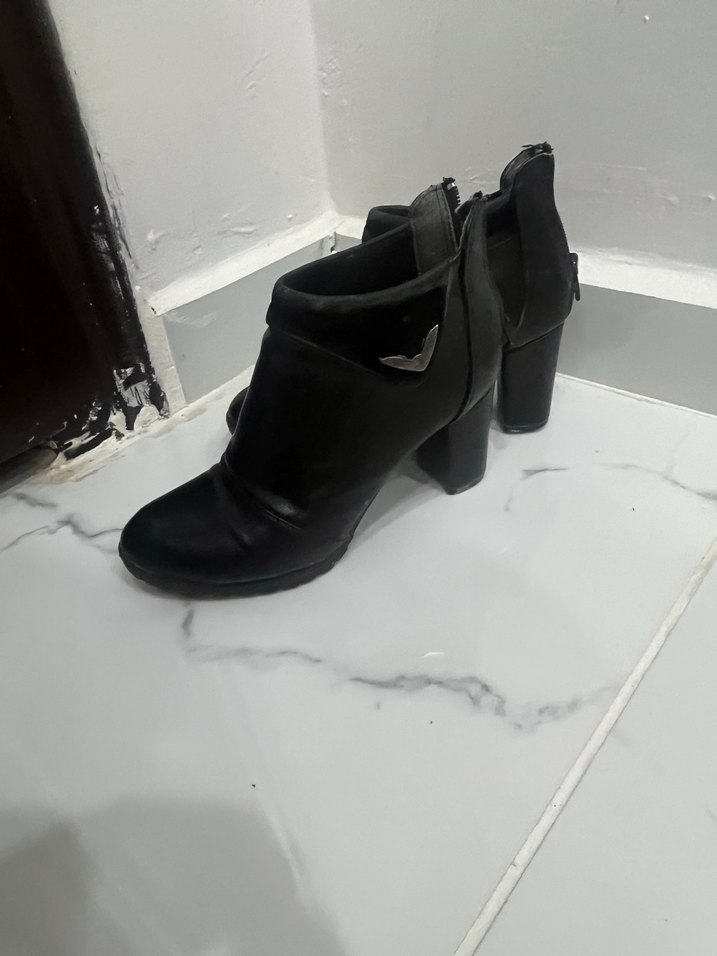 Siyah Tokalı Blok Topuklu Gotik Kadın Bot