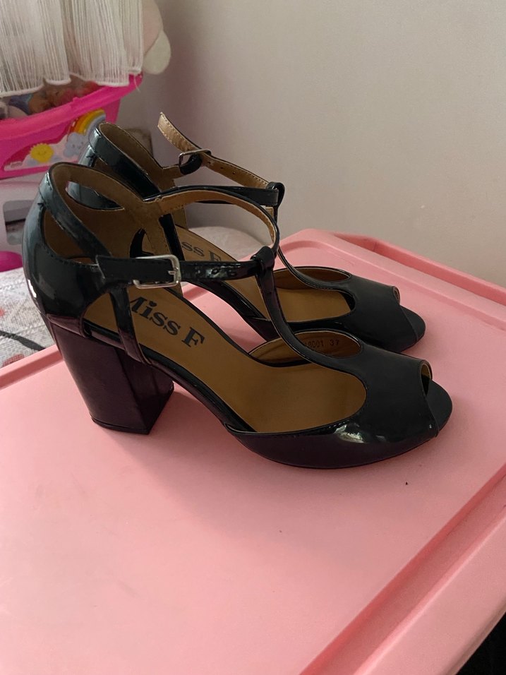 Siyah Tokalı Blok Topuklu Kadın Abiye Ayakkabı