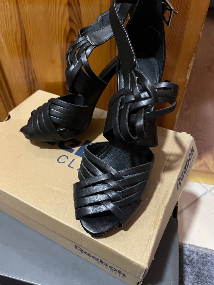 Siyah tokalı blok topuklu kadın akşam ayakkabısı, koyu renkte, avangart gotik tarzda. Romantik akşamlar için uygundur. Dayanıklı kauçuk malzemeden yapılmıştır.