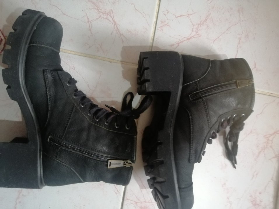 Siyah kauçuk kadın botları, blok topuklu ve tokalı detaylı, fermuar ve bağcıklı tasarıma sahip. Grunge punk tarzında, günlük kullanım için uygun. Bu bot toplamda belki 3 ya da 4 kere ancak giyinmiştir deride herhangi bir kırık çatlama yoktur Orijinal ve deridir Bu markayı bilenler zaten botun ne olduğunu anlar alana hayırlı olsun