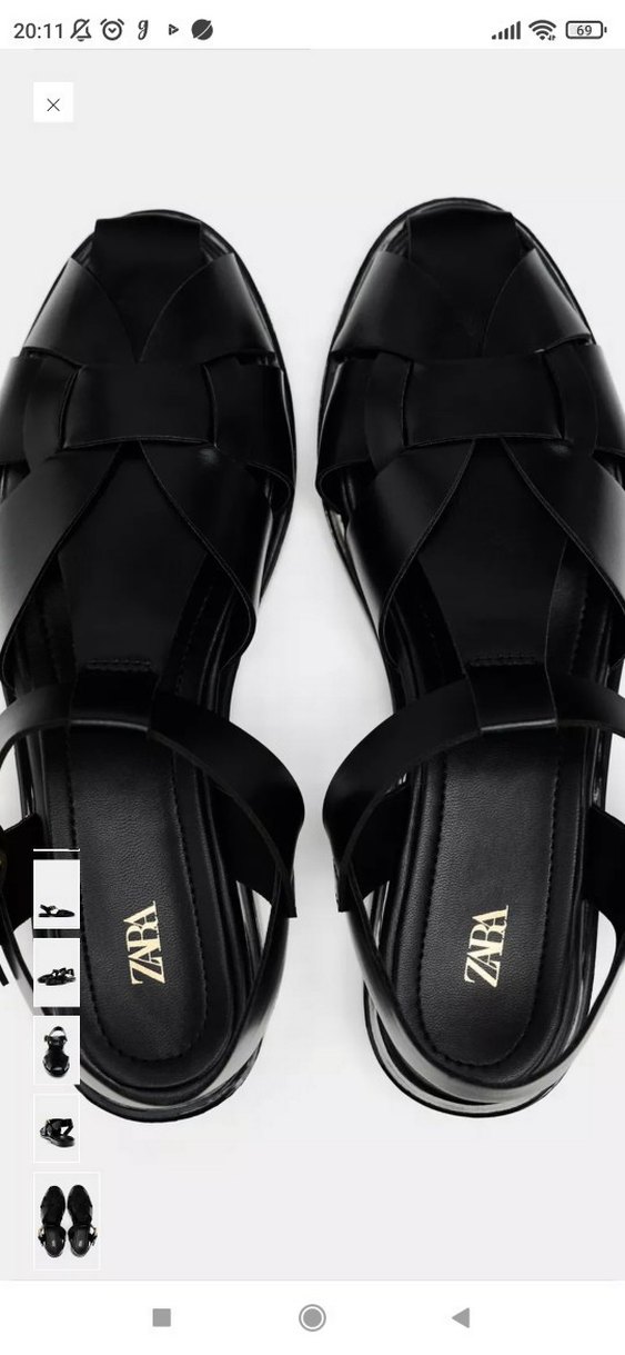 Blok topuklu, tokalı siyah kauçuk sandaletler. Minimalist desenli ve günlük sokak tarzına uygun. ZARA markası.