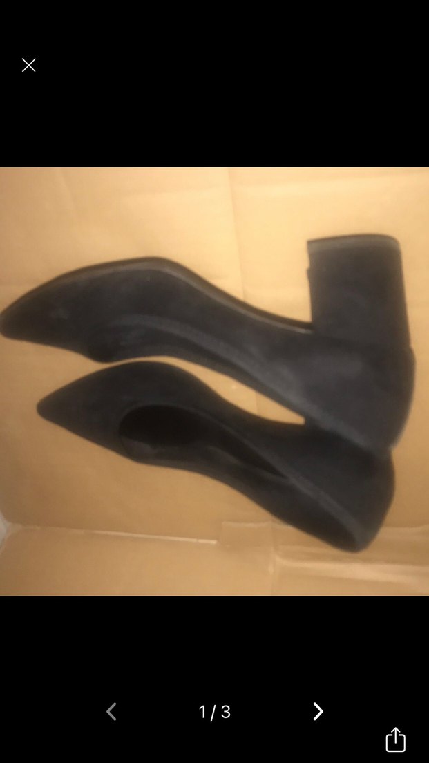 Siyah, tokalı ve blok topuklu kadın stiletto. Kauçuk malzemeden, minimalist goth tarzında, ofis kullanımı için uygun.