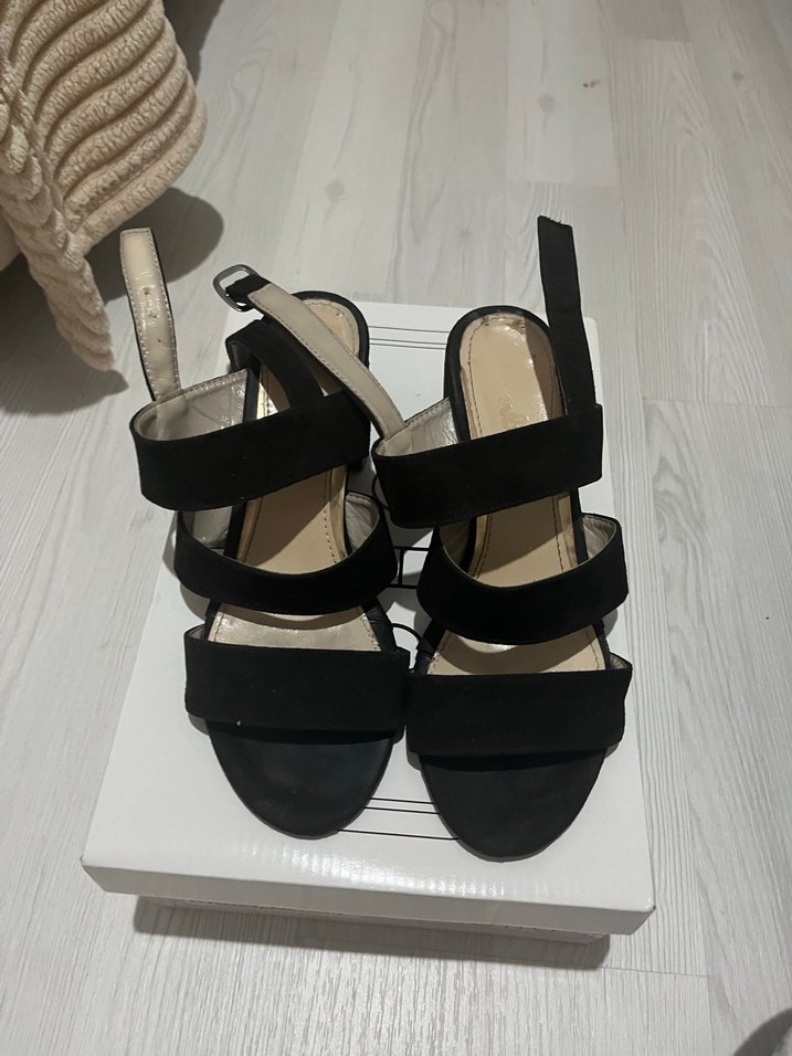 Dayanıklı kauçuk malzemeden yapılmış, tokalı ve blok topuklu siyah kadın topuklu ayakkabılar. Minimalist ve çağdaş tasarıma sahip, günlük kullanıma uygundur.