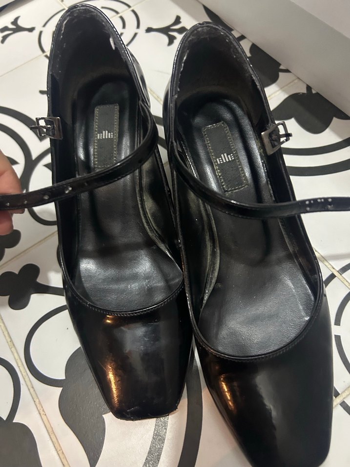 Siyah Tokalı Blok Topuklu mary jane Kadın Ayakkabı