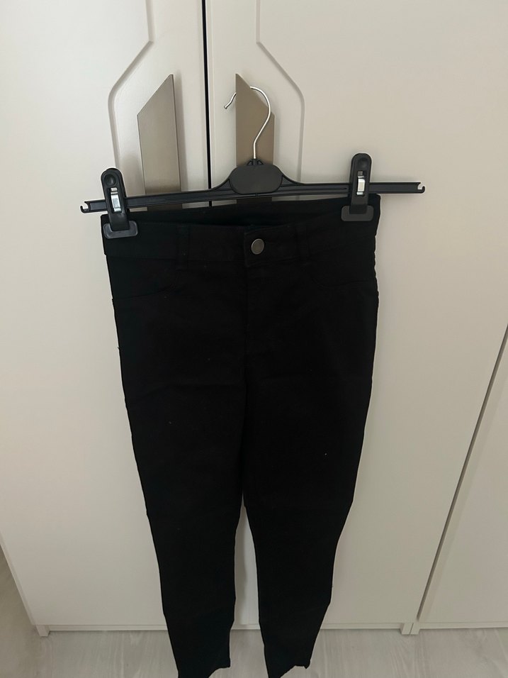 siyah renkte, tokalı ve dar kesim kot pantolon. Goth tarzını yansıtan sade ve desen içermeyen model.