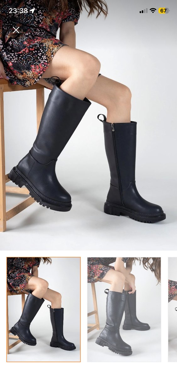 Siyah Tokalı Diz Boyu Bot