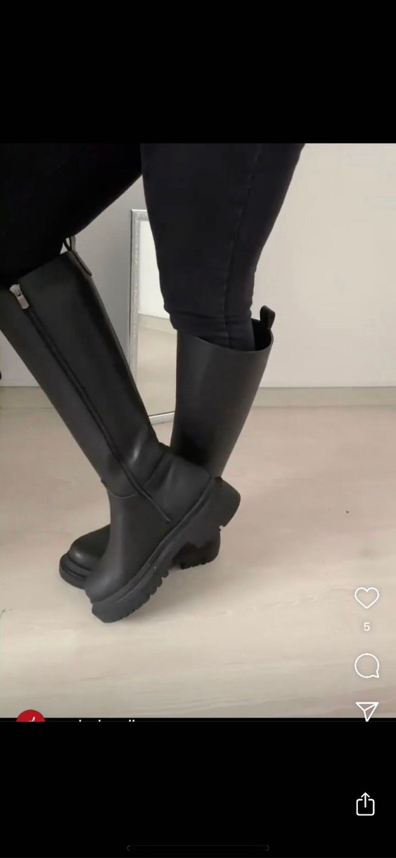 Siyah tokalı, stiletto topuklu dizüstü çizme, kauçuk malzemeden, trend sokak stiline uygun.