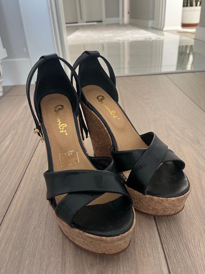 Siyah Tokalı Dolgu Topuklu Kadın Sandalet