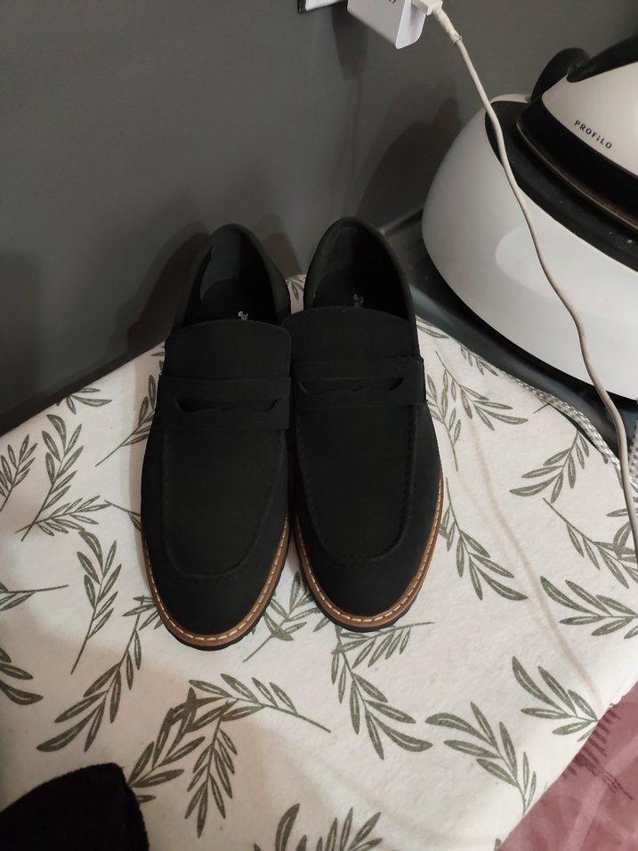 Siyah tokalı ve kauçuk tabanlı erkek loafer ayakkabılar, trend sokak stili için uygun.