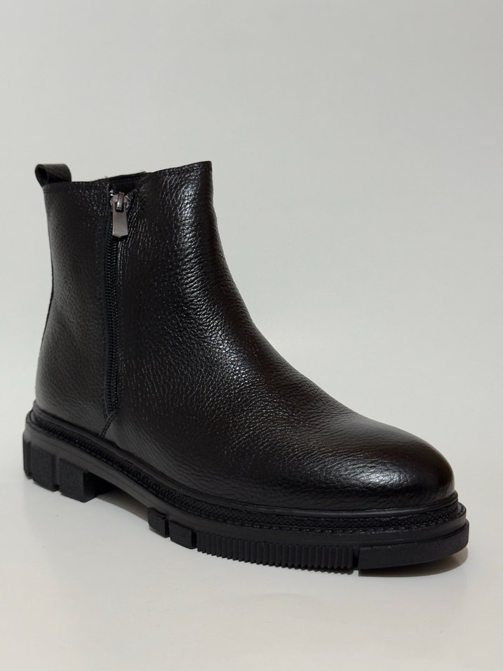 Yan fermuarlı ve tokalı detaylı siyah erkek biker botu, sokak stiline uygun dayanıklı tabanla. Numaralar 40-41-42-43-44