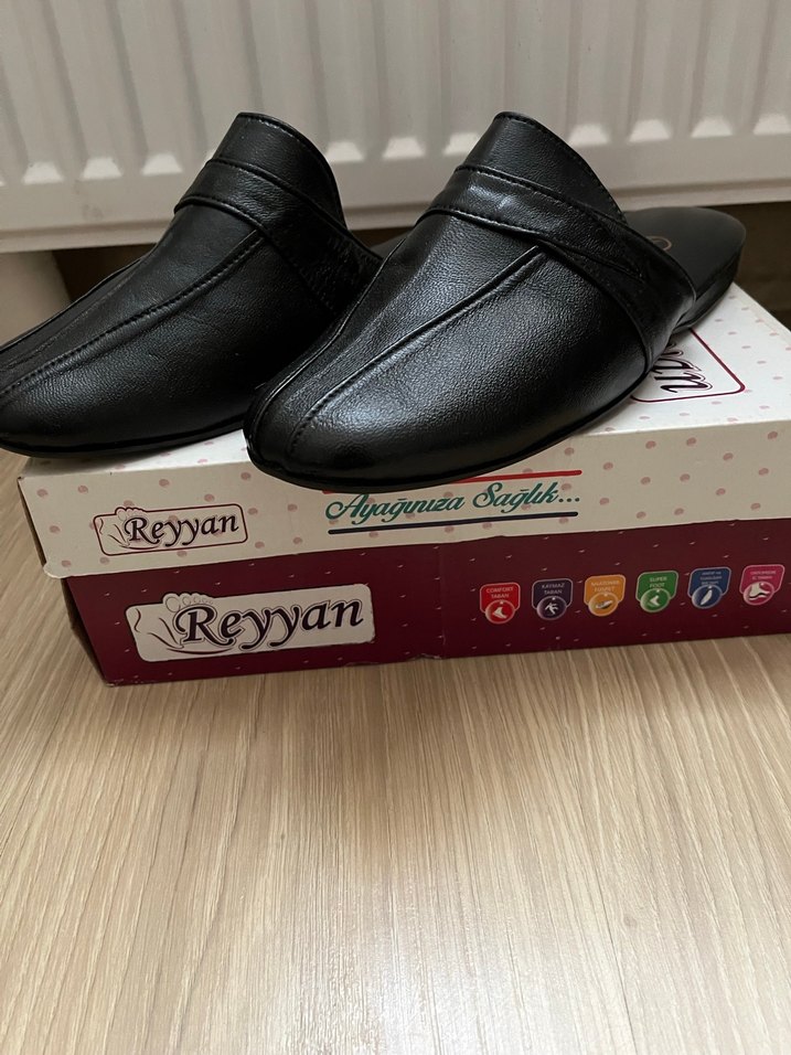 Klasik tasarımlı, siyah tokalı erkek ev terliği. Rahat kullanım ve desensiz sade görünüm sunar. Marka: Reyyan.