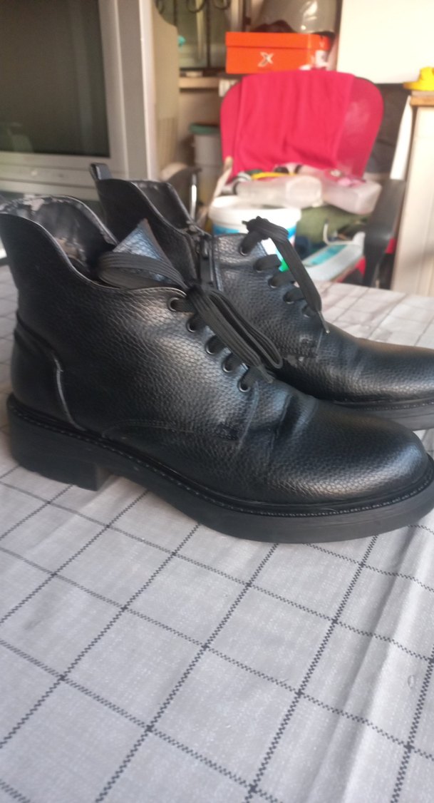 Tokalı detaylı, siyah deri erkek goth botları. Düz ve koyu renkli, bağcıklı tasarıma sahip. Sokak stiline uygun.