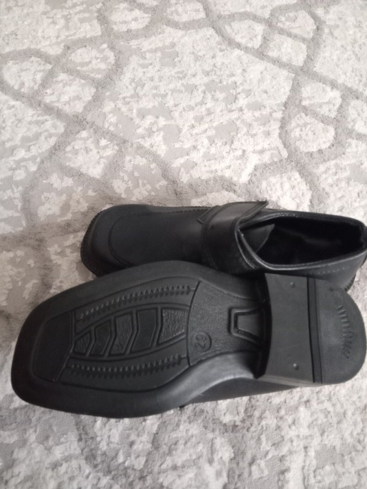 Siyah, tokalı, desen içermeyen minimalist goth tarzı erkek botu. Koyu renk ve sağlam taban şık bir görünüm sunar.