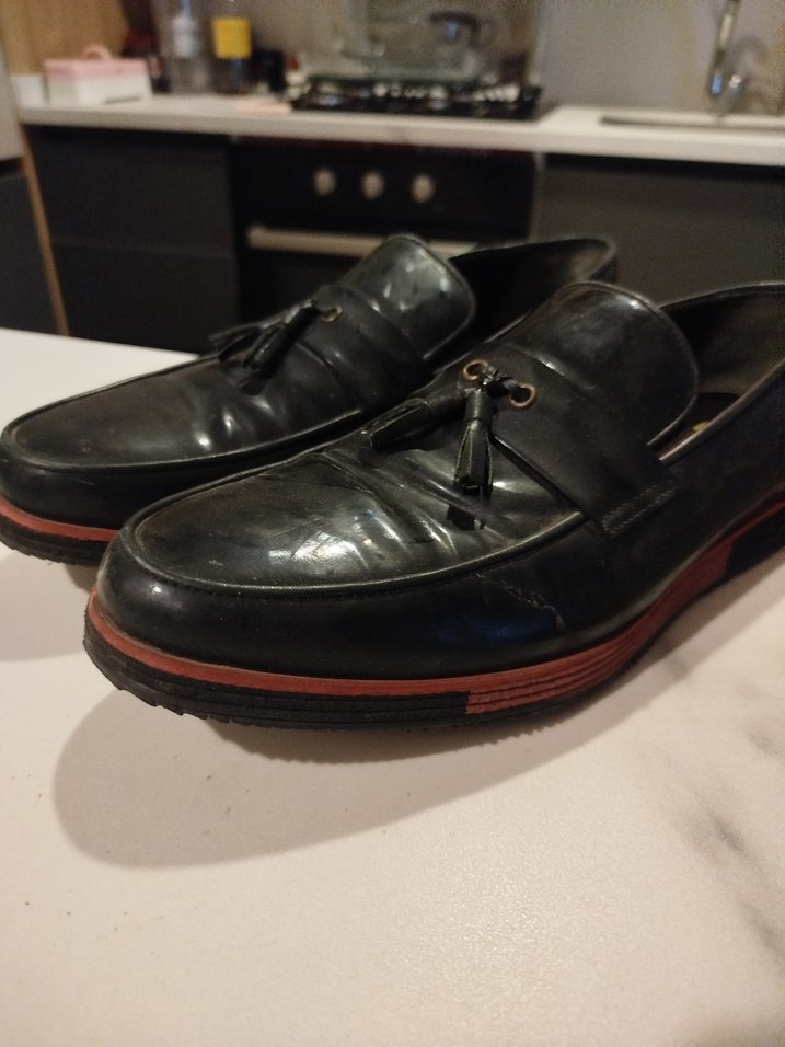 Siyah renkli, tokalı erkek klasik ayakkabılar. Kauçuk tabanlı, desen içermeyen ve ofis kullanımı için uygun.