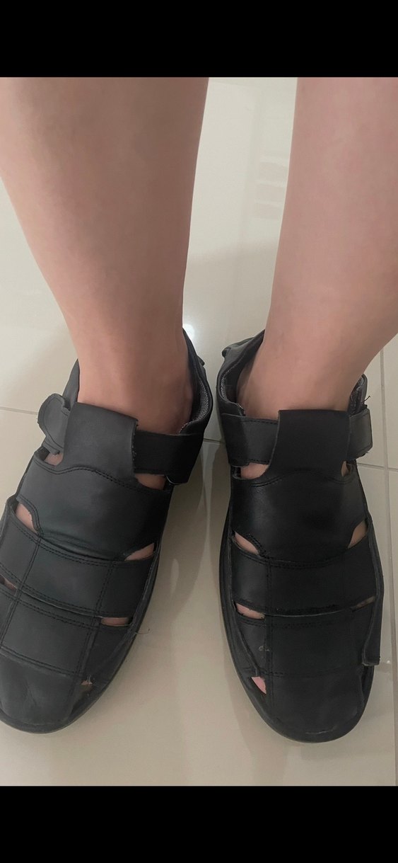 Siyah, tokalı bantlara sahip erkek sandaletleri, lastik malzemeden yapılmış, minimalist ve gotik tarzda, günlük rahat kullanım için uygundur. 43 numara