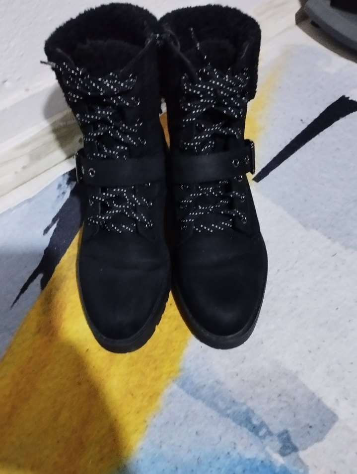 Siyah kadın botları, blok topuklu, tokalı ve bağcıklı tasarıma sahiptir. Grunge punk ve goth tarzını yansıtarak dış mekan kullanımına uygundur.