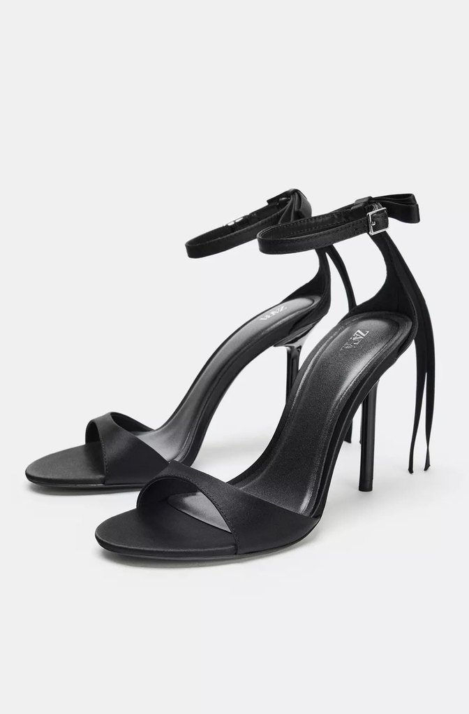 Siyah tokalı ince topuklu ayakkabılar, minimalist ve çağdaş tasarıma sahip. Kauçuk malzemeden üretilmiş, romantik akşamlar için ideal.
