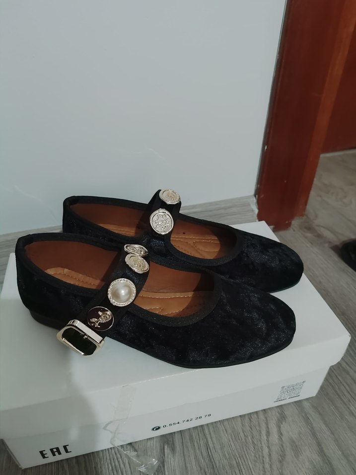 sıfır magaza ürünü Siyah tokalı bantlı, blok topuklu,kadın babet