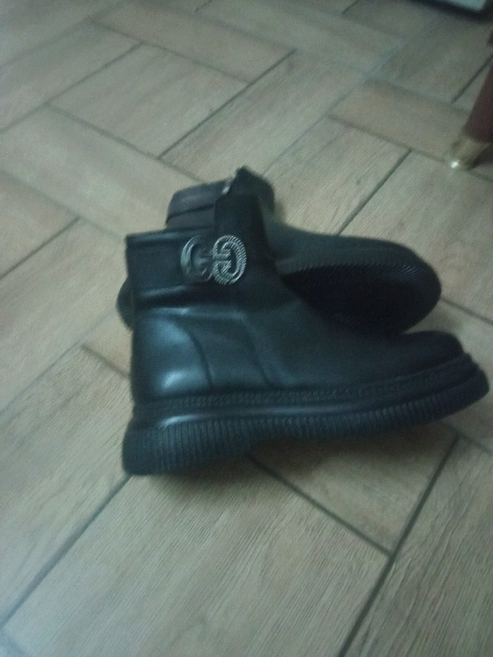 Kauçuk malzemeden yapılmış, tokalı siyah kadın biker botu. Dolgu topuklu ve minimalist tarzda, günlük kullanıma uygun.
