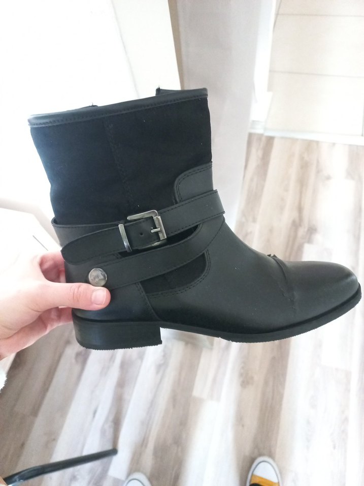 Tokalı kayışları ve blok topuklu siyah deri biker botlar, hakiki deri oldugu icin hic giymedigimden dolayi on kisimda soyulmalar mevcut ama onun disinda tas gibi hic kullanilmadi