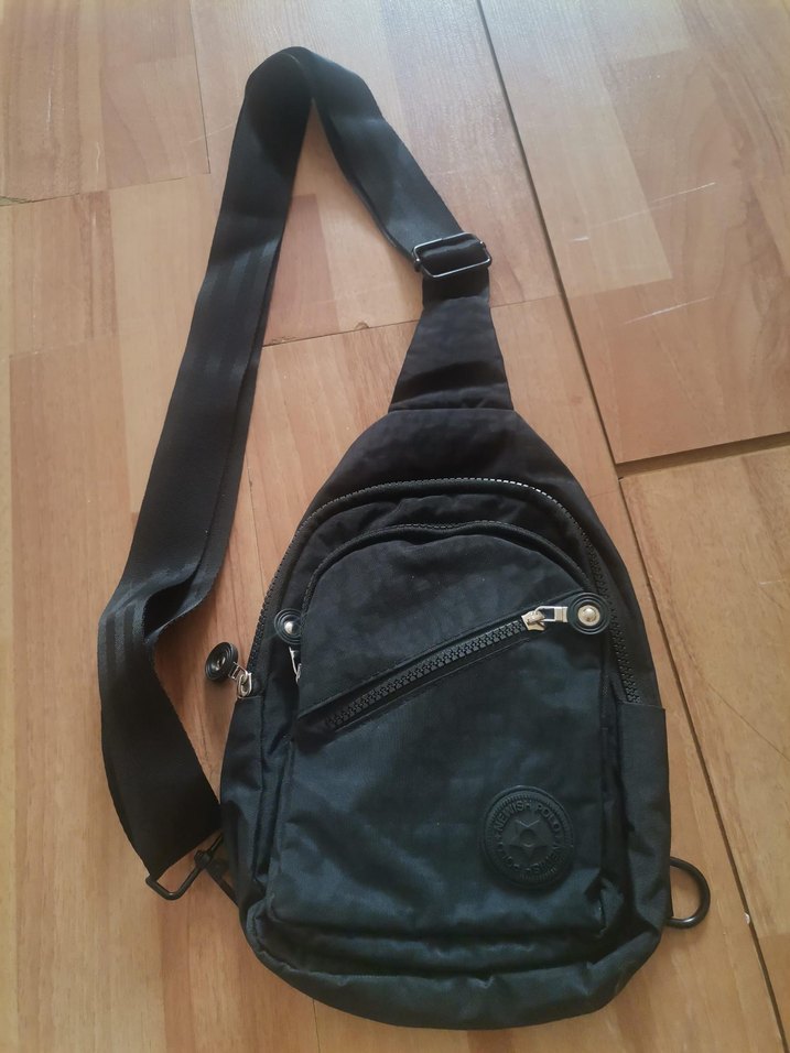 Siyah tokalı çapraz çanta, fermuarlı cepler ve sentetik kumaştan minimalist sokak stili sunar. Günlük kullanıma uygundur.