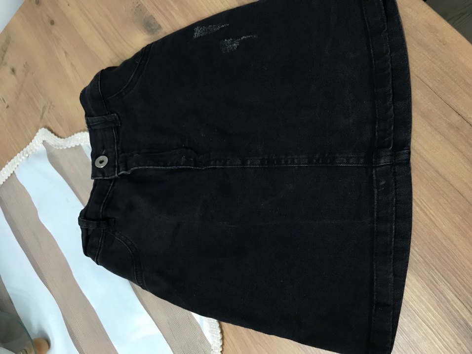Siyah, tokalı, fitted kesim denim midi etek. Desensiz ve goth tarzında, günlük kullanıma uygun.