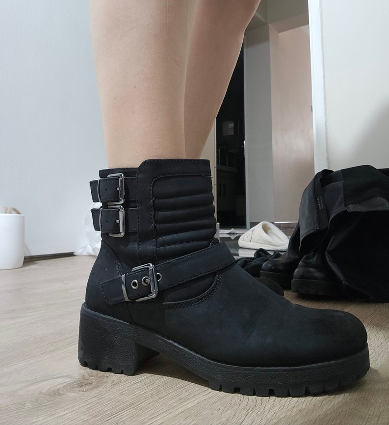 Siyah Tokalı Kadın Deri Bot