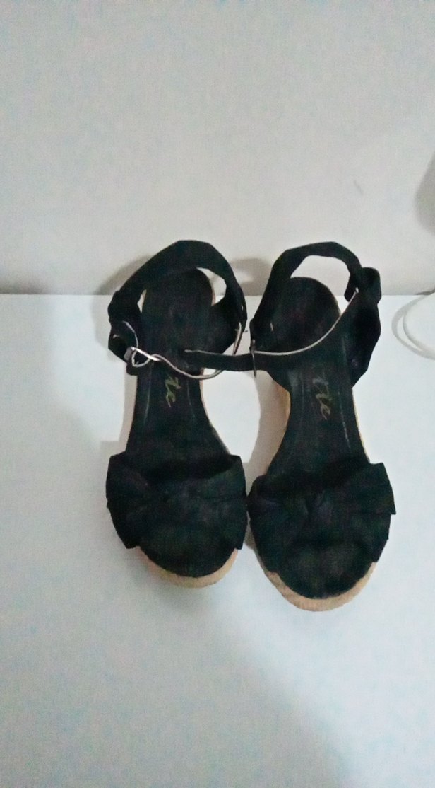 Siyah tokalı bantlı, kauçuk tabanlı dolgu topuk sandalet. Minimalist tasarımıyla günlük kullanıma uygundur. Trendy casual ve goth tarzına uyum sağlar.