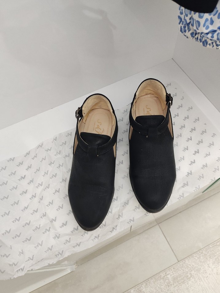 Siyah renkte, tokalı ve blok topuklu kadın günlük ayakkabısı. Kauçuk malzemeden üretilmiş, minimalist ve normcore tarzında, günlük kullanıma uygun.